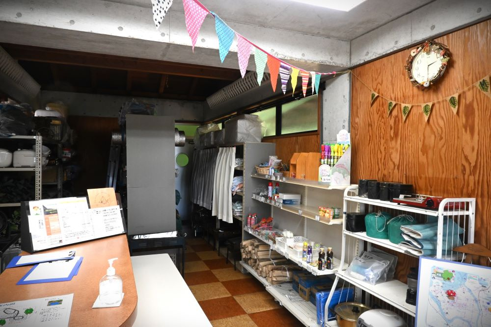 管理棟にはレンタル用品やちょっとした売店スペースがあります。