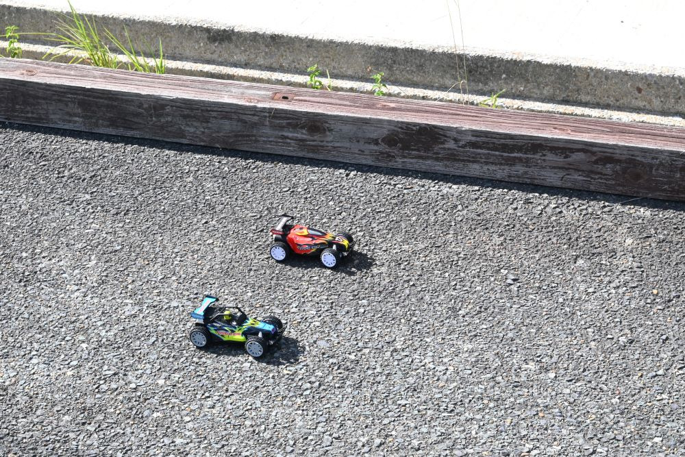 コースが想像以上に広く、持ってきたおもちゃのラジコンでは操作台から電波が届かないという事態が発生!