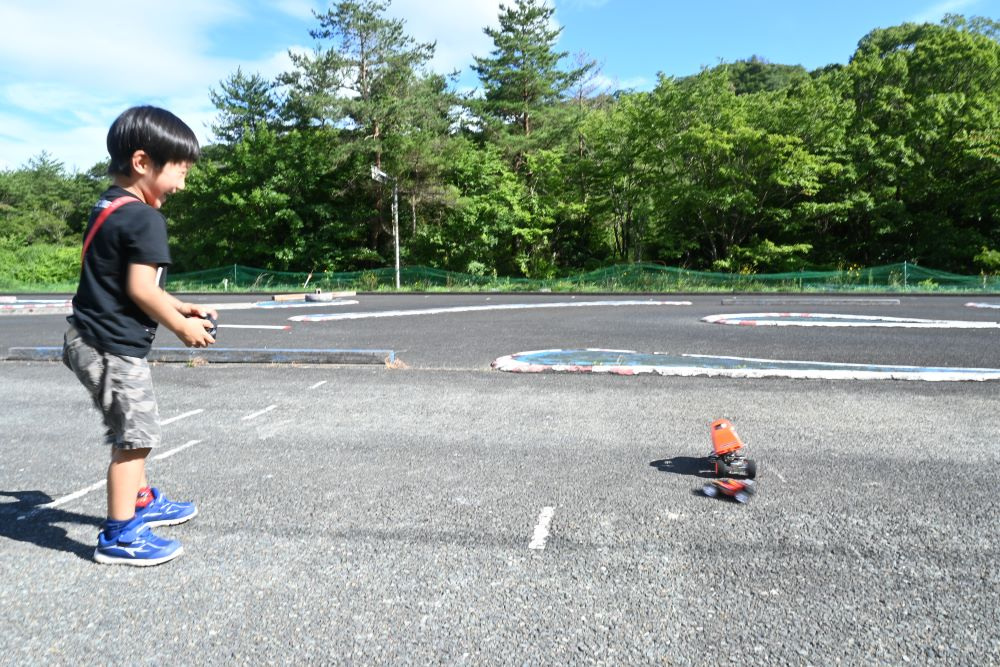コース全体を走らせることはできませんでしたが、普段よりも広々としたスペースでのびのびとラジコン遊びができて、満足げ♪