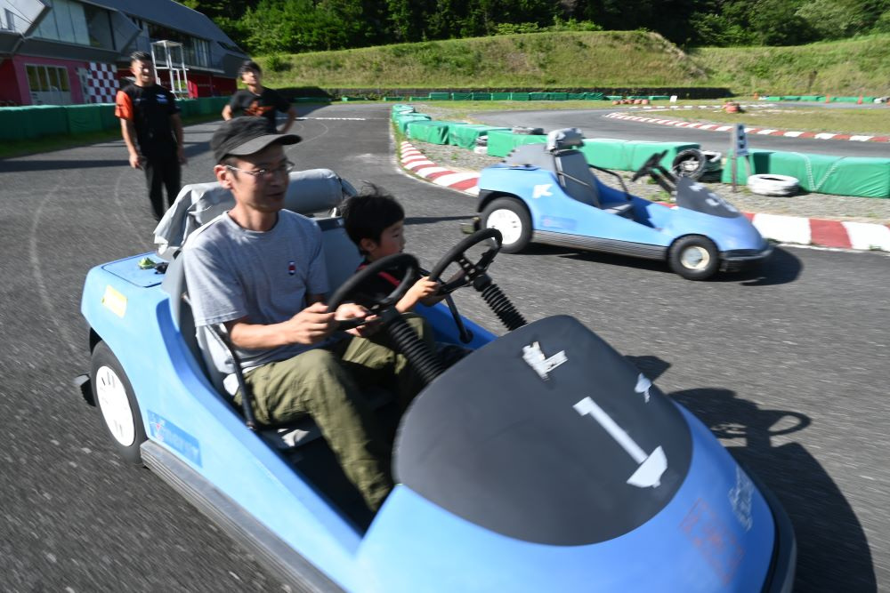 私たちは、父と息子、母と娘の2組に分かれて二人乗りのレジャーカートに乗りました
