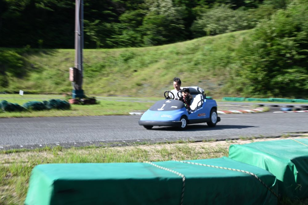 レジャーカートは二人乗りで、親子で乗ることができます。(1周310円)