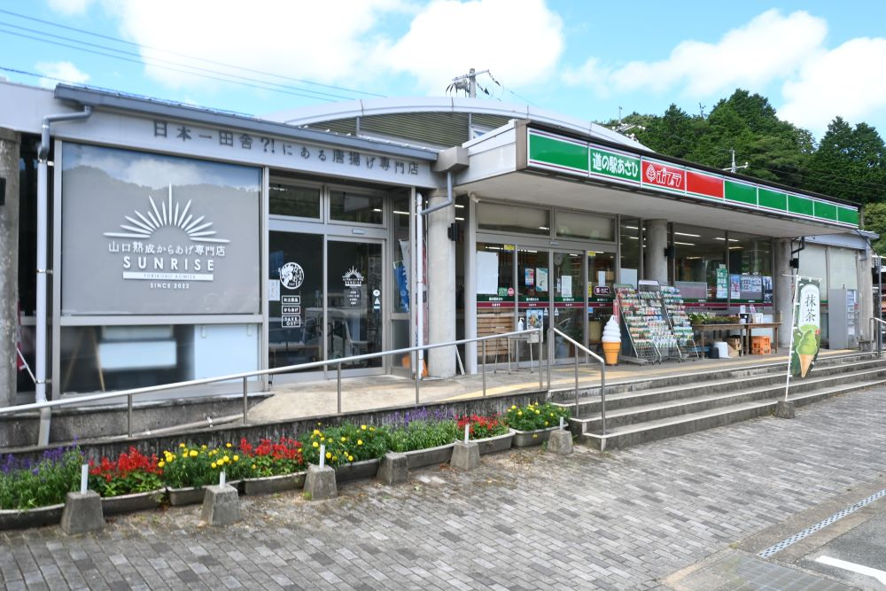 また、「~日本一田舎?!にある唐揚げ専門店~山口熟成唐揚げ専門店 SUNRISE」という唐揚げ屋さんもあり、私が立ち寄った時はまだ開店前でしたが、揚げ立てが道の駅にも並んでいたので購入しました!