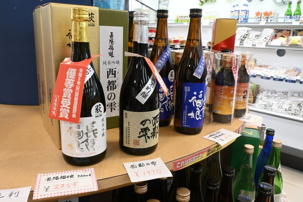 萩の地酒も並んでいますよ、キャンプのお供にぜひ♪