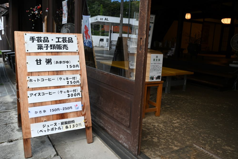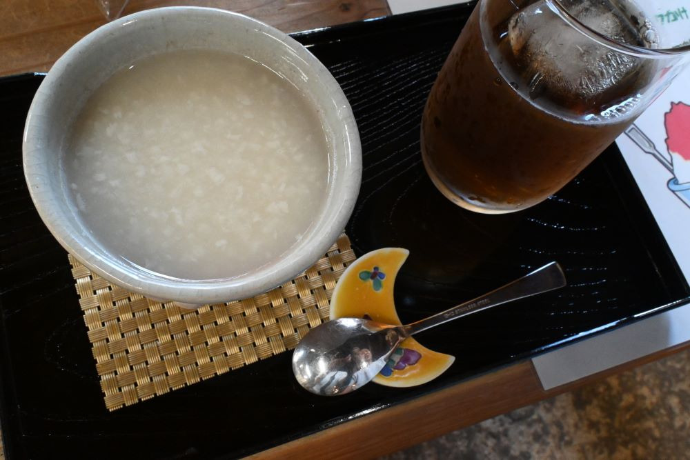 アイスコーヒーやかき氷、こちらの名物「甘粥」などを注文して、『道の駅あさひ』で購入した生餅や玄米餅、唐揚げなども一緒にちょっと早めのお昼をいただくことに。