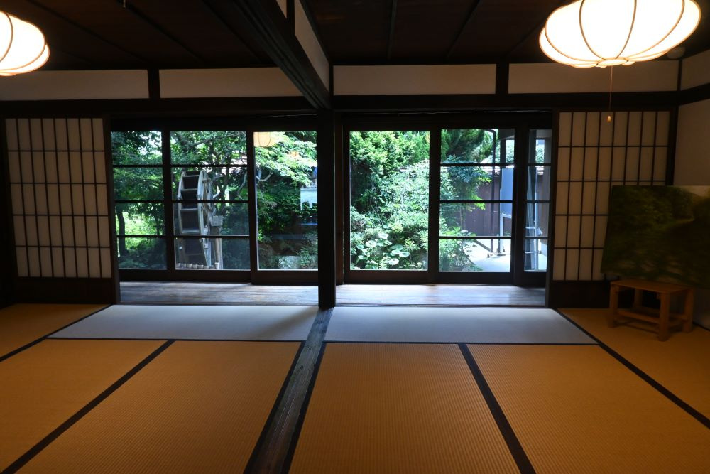 かつて旅館として使われていた建物は、一階の主座敷をはじめ、二階には萩往還を望む表座敷、佐々並川や田園を見渡せる奥座敷があり、どの部屋からも趣ある景色が楽しめます。