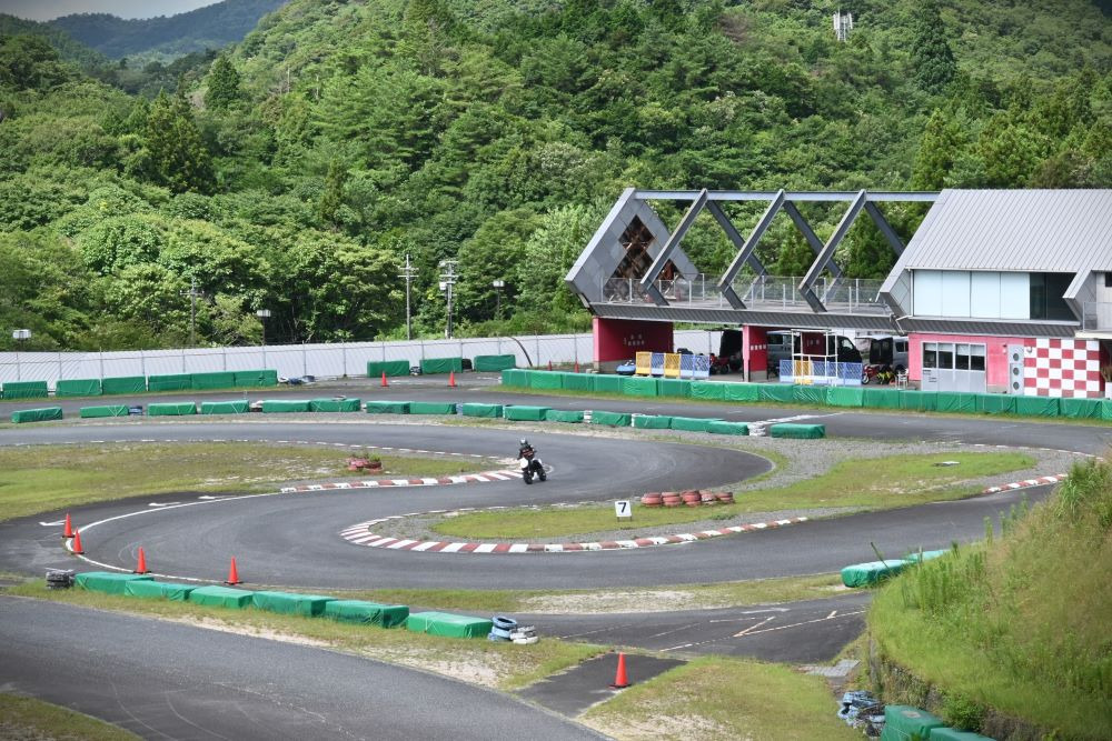 テントサイトを下るときに見えたサーキット場では、2台のオートバイが走行練習していました。