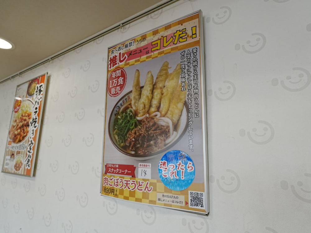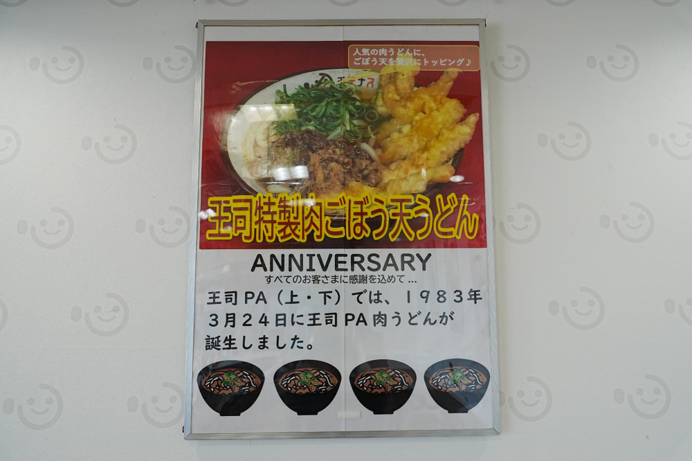 王司PAのフードコート「王司亭」の名物といえば「肉ごぼう天うどん」!1983年の誕生以降、長きにわたり愛され続けているメニューです。