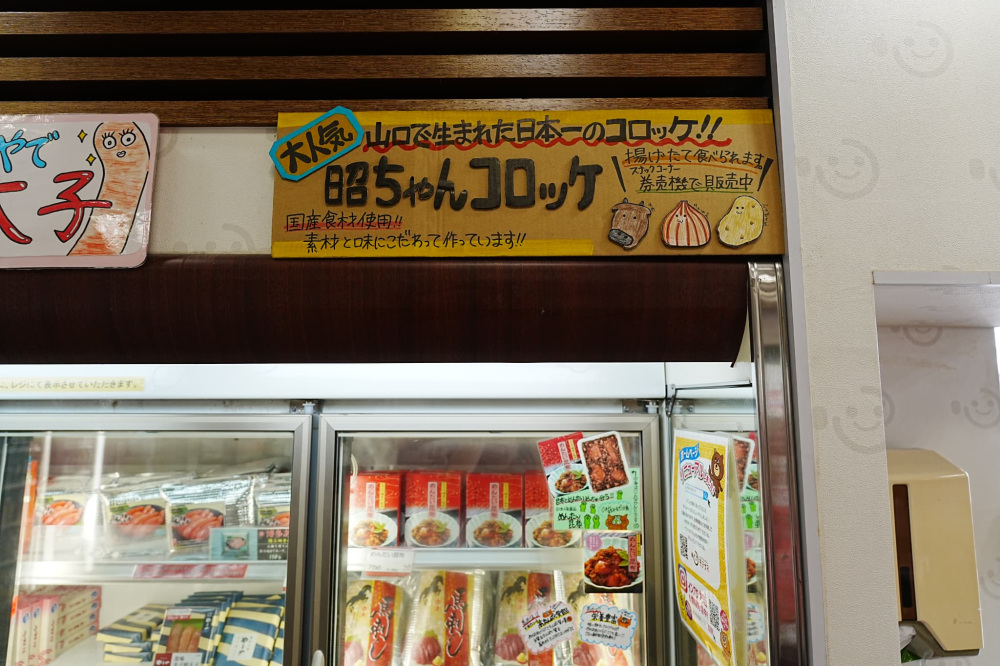 王司パーキングエリアのテイクアウトメニューでおすすめなのが昭ちゃんコロッケ(150円)です。全国手作りコロッケコンクールで金賞を受賞した昭ちゃんコロッケは、山口県民のみならず全国にファンが多いコロッケなんですよ。