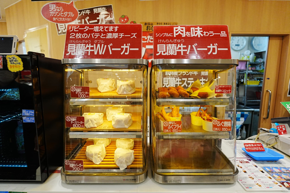 テイクアウトメニューのおすすめは、萩特産のブランド牛「見蘭牛」を使用した見蘭牛ダブルバーガー1,000円!ここでしか味わえない限定メニューで、美東SAに寄ったら必ず食べたいというリピーターも多い人気メニューなんですよ。