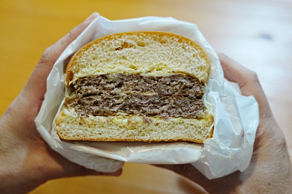 美東サービスエリア(上り線)テイクアウトグルメ「見蘭牛ダブルバーガー」
