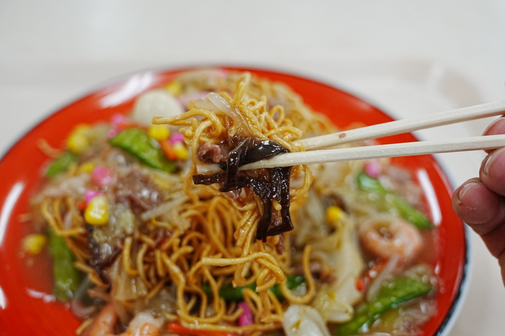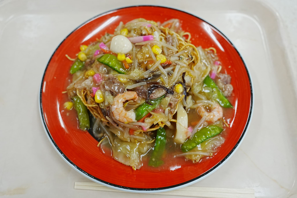 豚肉、野菜、魚介がたっぷり入った熱々の餡は、香ばしい麺によく絡み、口の中で旨味が広がります。また、食べ進めるうちに餡が麺に浸みこんで、食感の変化も楽しむことができますよ。ボリューム満点で食べ応えも抜群なのでリピーターが多いのも納得です