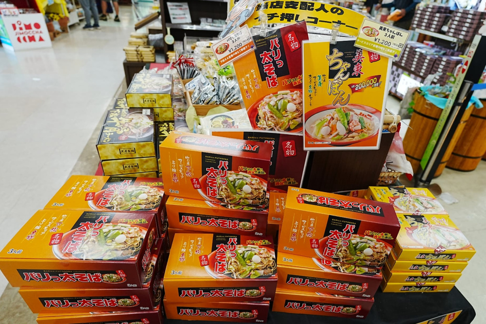 お土産コーナーには、ご自宅でも簡単に味わえるお土産用のバリっ太そばや、地元下松の特産品などが豊富に揃っていますよ!