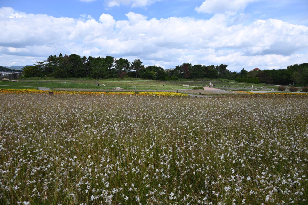 秋にはコスモス、春には菜の花が咲き誇る花畑も必見です!