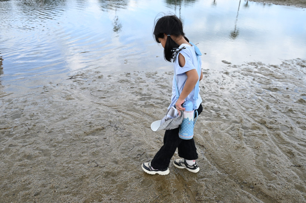 この日は、朝は満ち潮で水遊びを楽しむことができました!昼にねって潮が引くと砂浜で生き物を探して遊ぶことも。