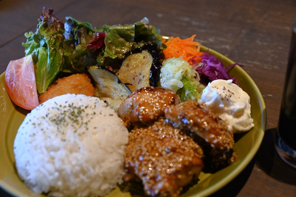 「メインを選べる野菜たっぷりプレート」は、たっぷりの野菜にメインのおかずが日替わりで選べます。