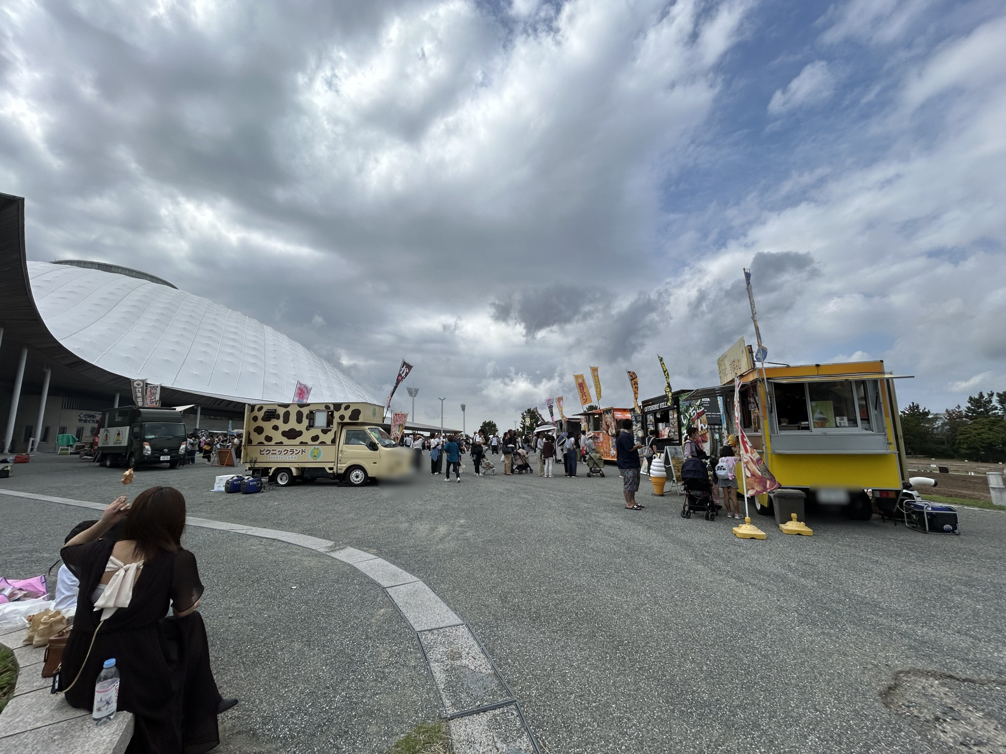 ドームの前には、キッチンカーがずらりと並んでいます。