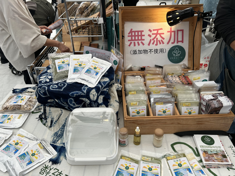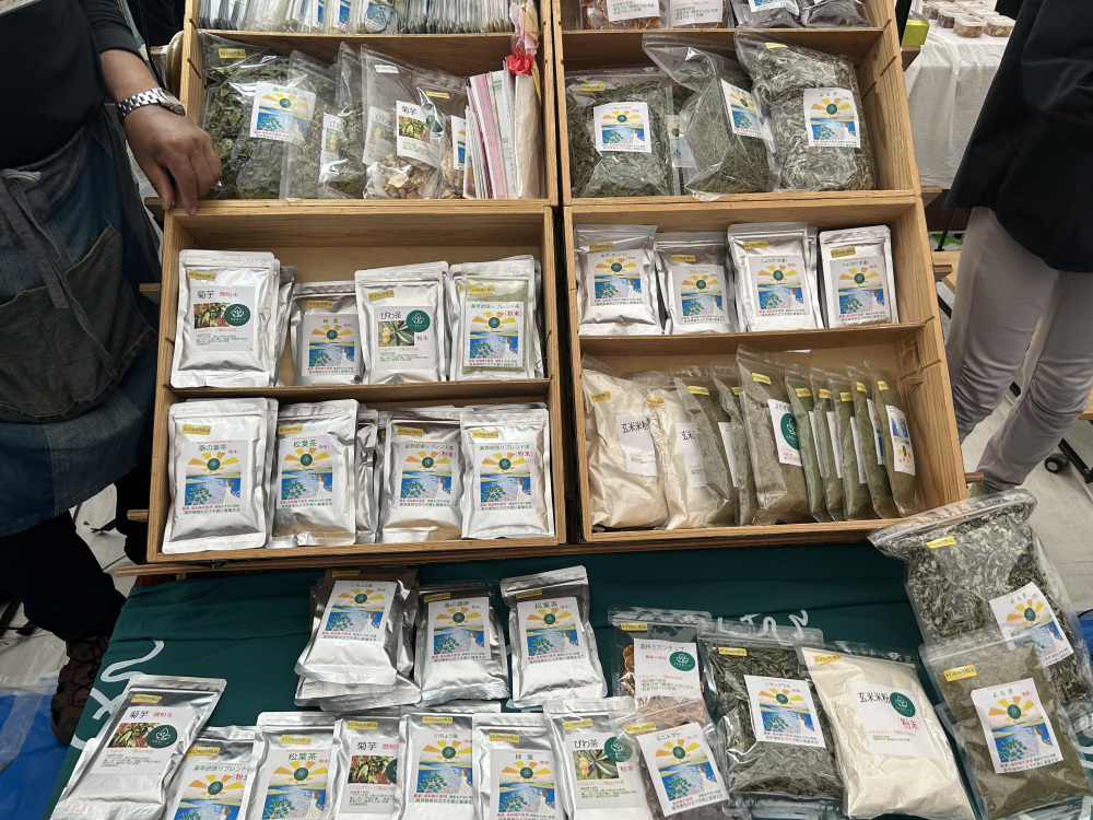 ともながハーブさんでは、薬草欲張りブレンド茶(桑・ビワ・柿・レモングラス)を試飲させてもらいました