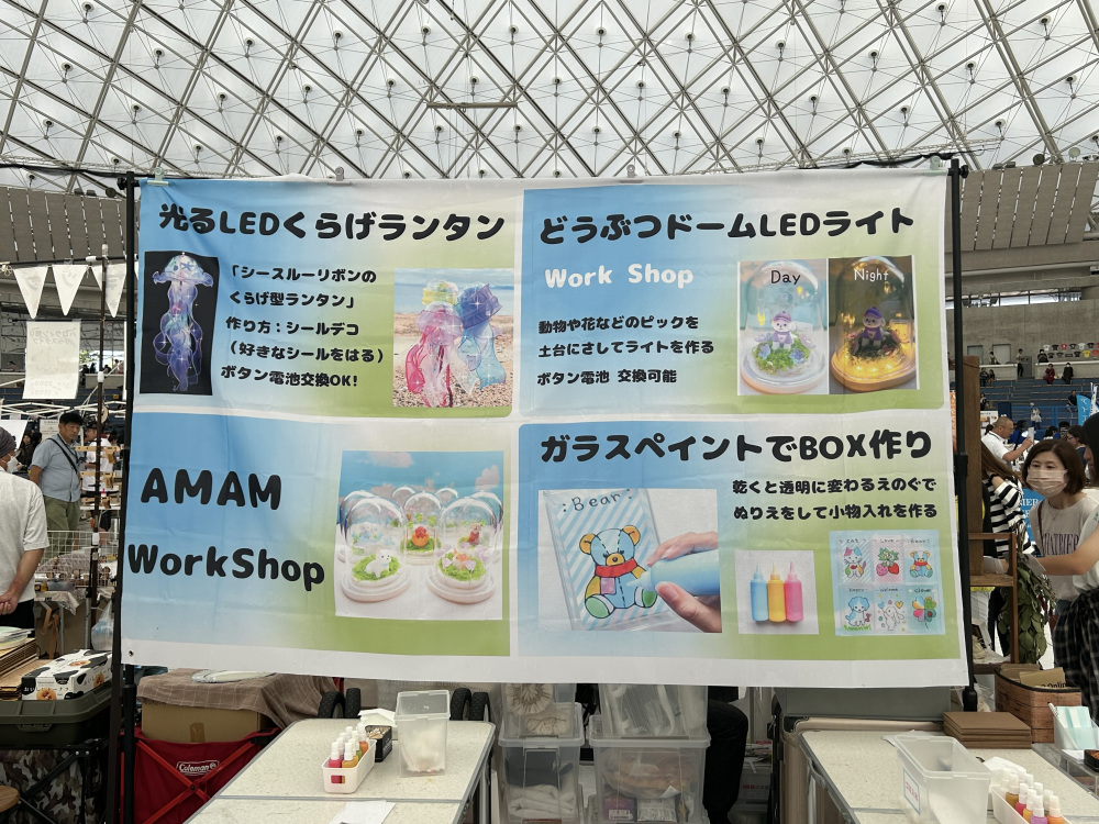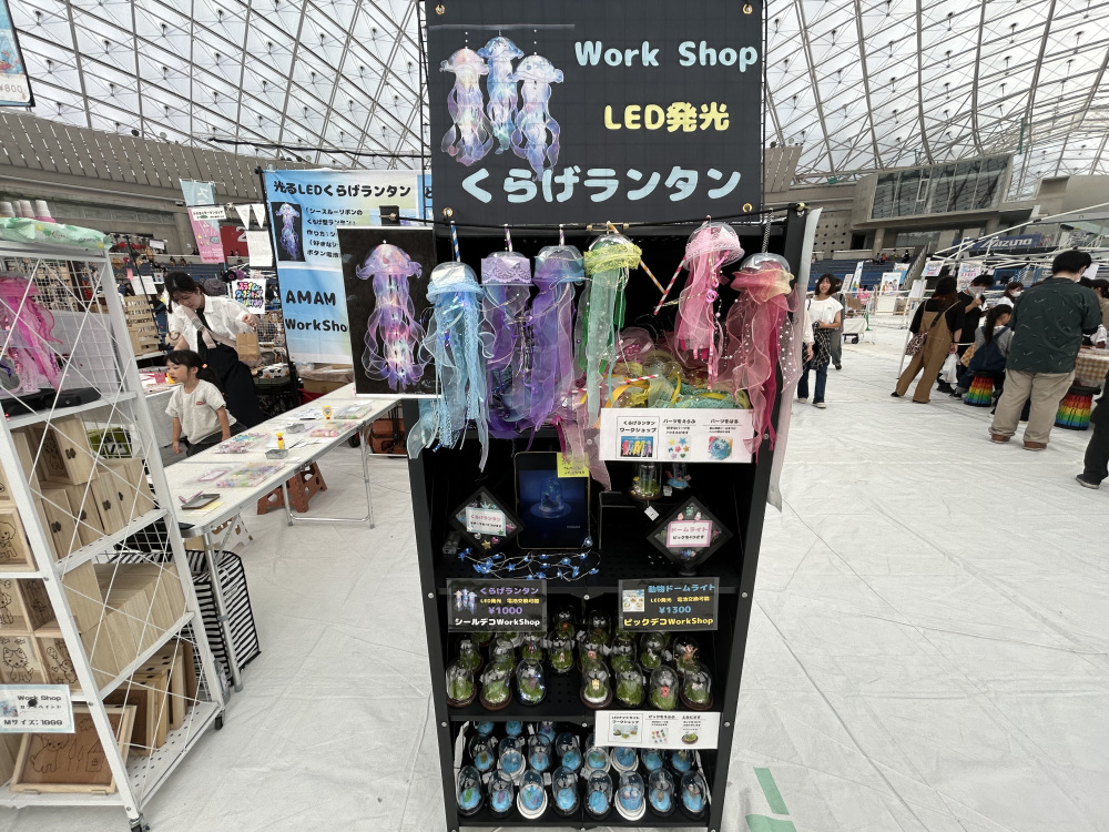 AMAMさんでは、光るLEDくらげランタン・どうぶつドームLEDライト・ガラスペイントでBOXが体験できます。