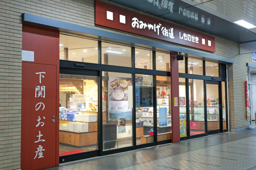 まずは、JR下関駅の改札を出てすぐ近くの「おみやげ街道 しものせき」へ。地元の人から観光客まで、あらゆる人が訪れるアクセス良好なお土産店です。