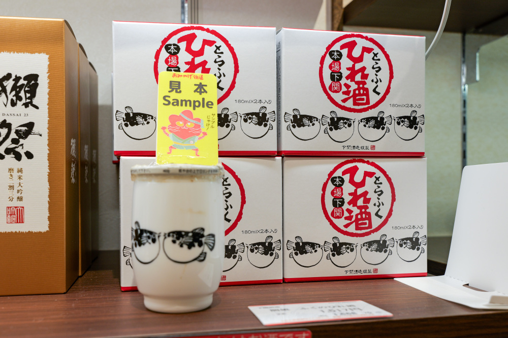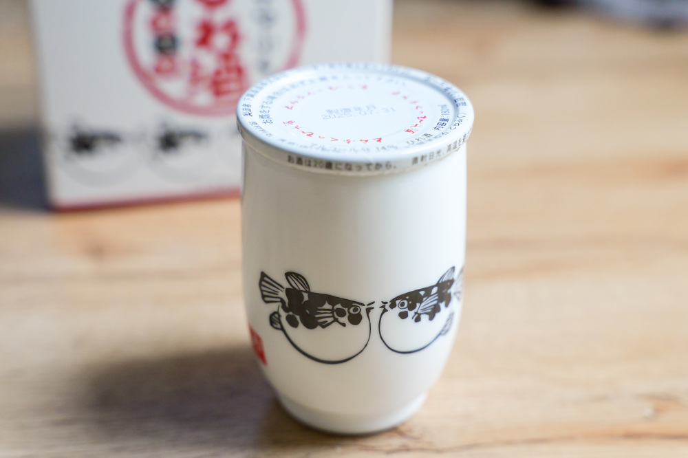 お菓子を食べる際には、ちょっとお酒が欲しくなることも。下関市の酒蔵「下関酒造」が手掛ける「とらふくひれ酒」は、ふくのイラストが描かれたカップ入りで、飲み終えた後にも楽しめるお酒です。