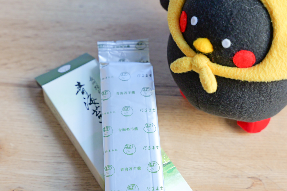 大正7年創業の「長州路菓子処 だるま堂」による「青海苔羊羹」はその名の通り、なんと青海苔を使ったようかん。下関市の粟野川(あわのがわ)が青海苔の名産地であることから100年以上も前に考案され、今も愛され続けています。