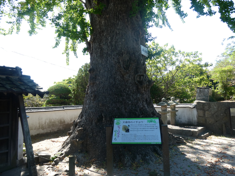 防府市の指定天然記念物にもなっていて、見上げてみるとその大きさに圧倒されます。明治時代に天徳寺が全焼した際も、兵火に耐えて生き残り樹齢を保った、生命力に満ちあふれたイチョウなんですよ!