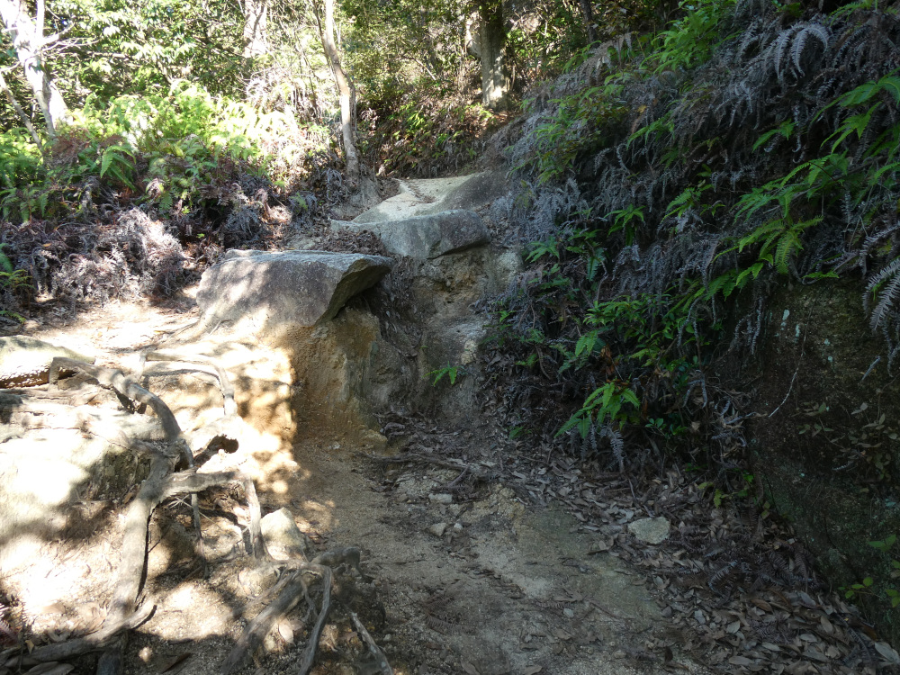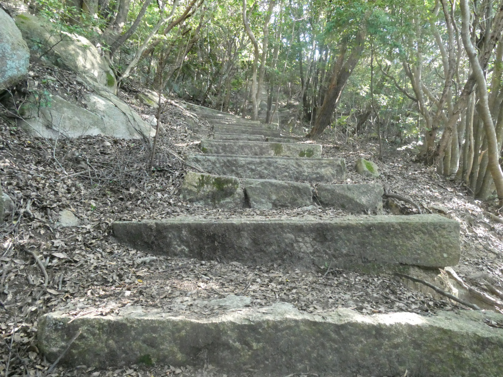 歩きやすい道ですが、途中、石階段が崩れて荒れている場所があるので、足元に十分注意して進んでくださいね!
