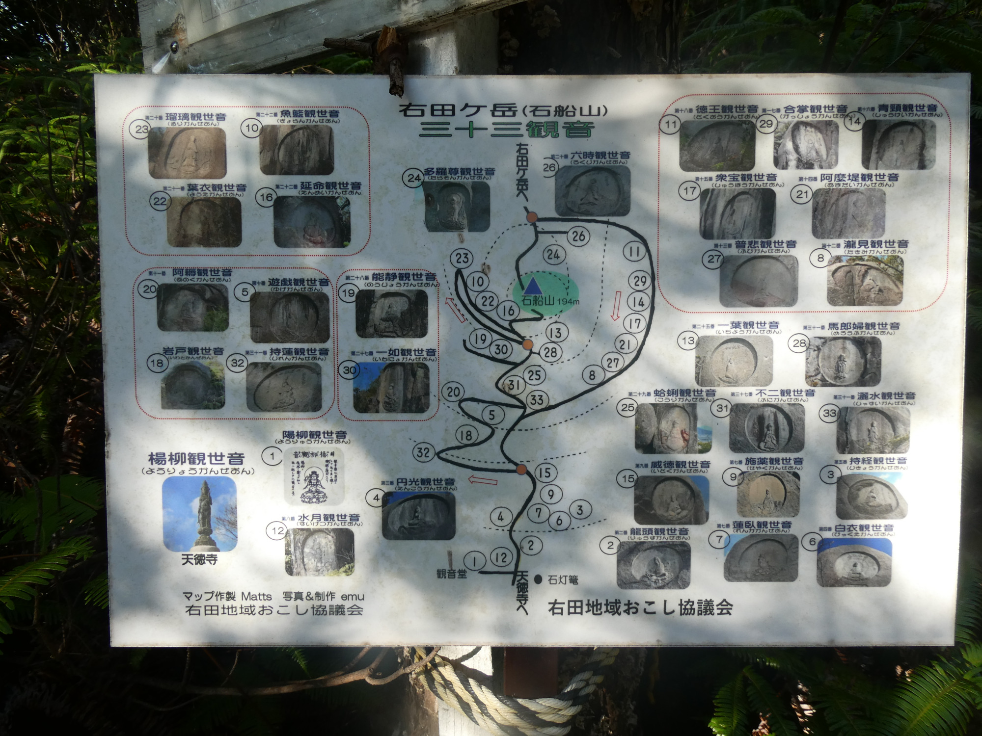 また、それぞれの観音像の近くには、彫られている観音様の名前や意味が記載された標識があります。