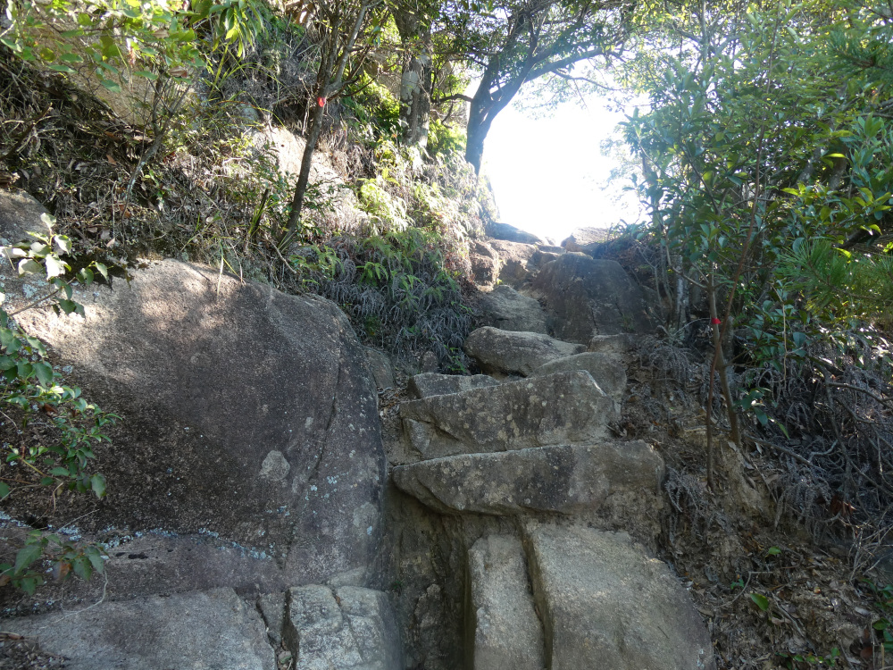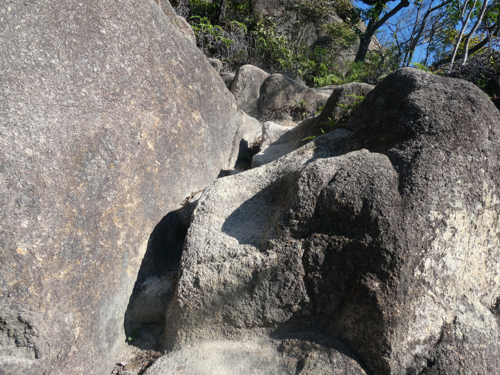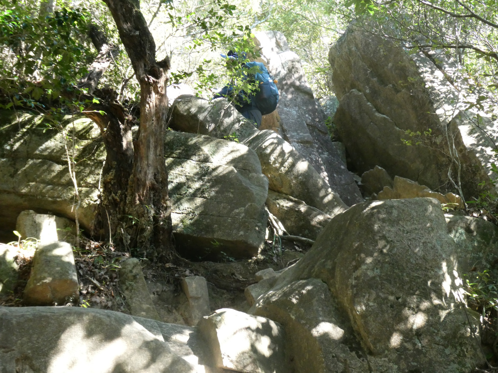 登山道は、本当に岩をよじ登るという感覚が強いんです!足をかける場所を考えたり、手を使わないと登れないような急な斜面が連続しますが、その分登り切るたびに達成感が得られます!