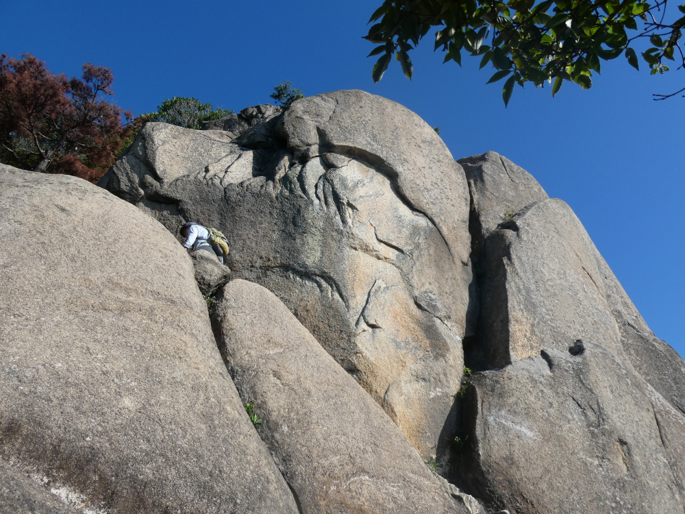 最後に立ちはだかる大岩壁!これを登れば頂上です。