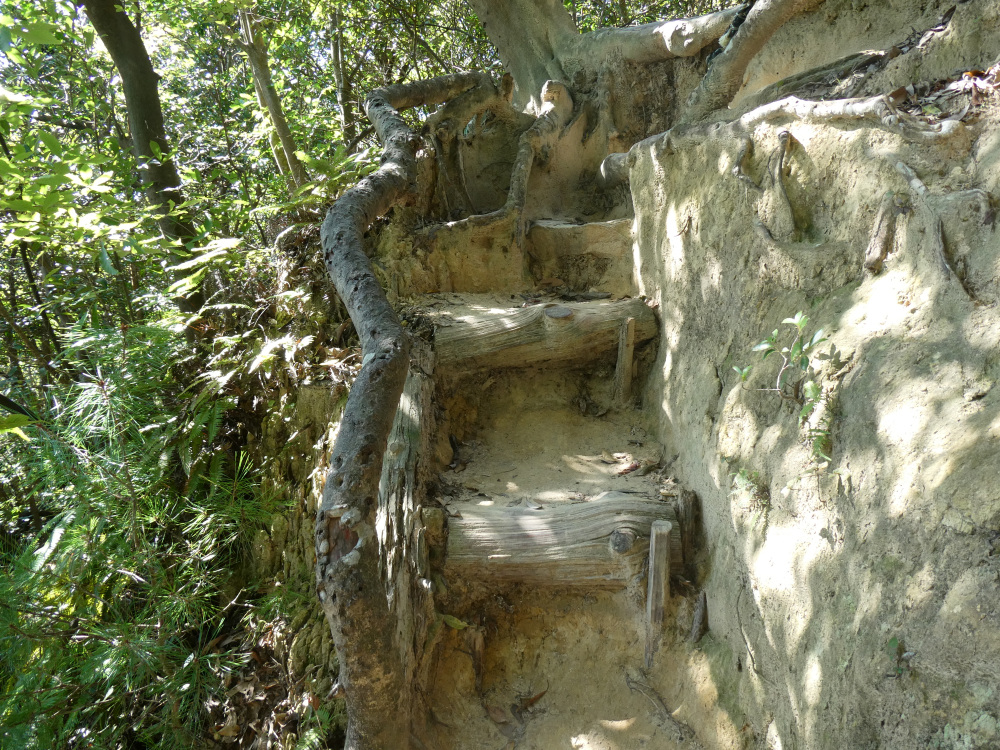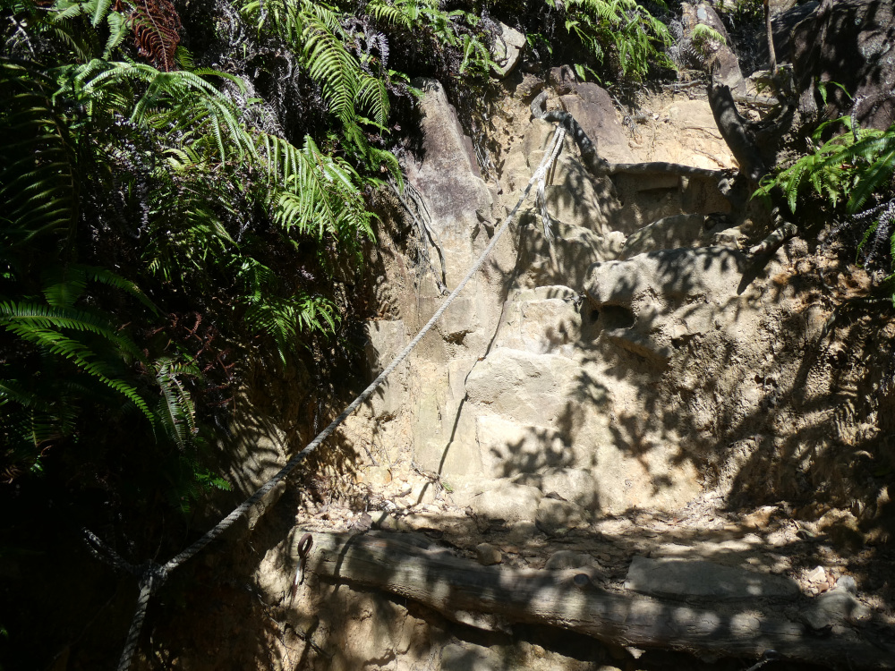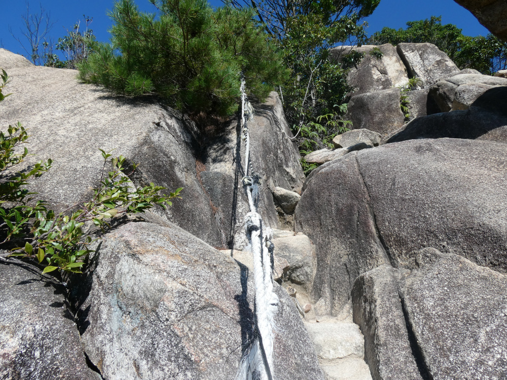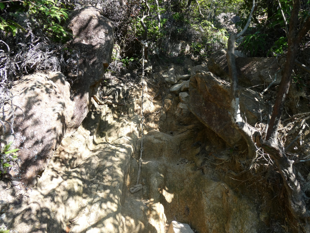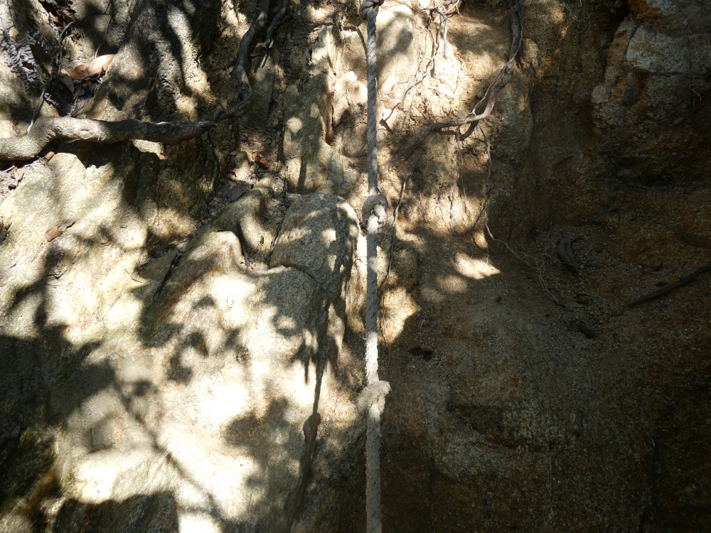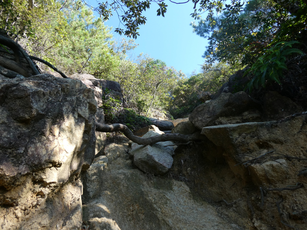 急な岩の斜面にはロープが張られている場所もあり、木の幹やロープを上手く使って登るのがポイントです!