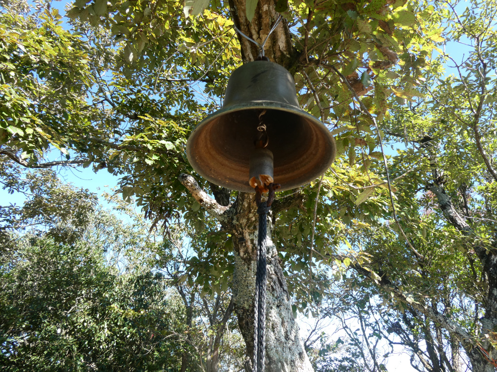 奥に進むと少し開けた場所があり、鐘が吊り下げてありました。