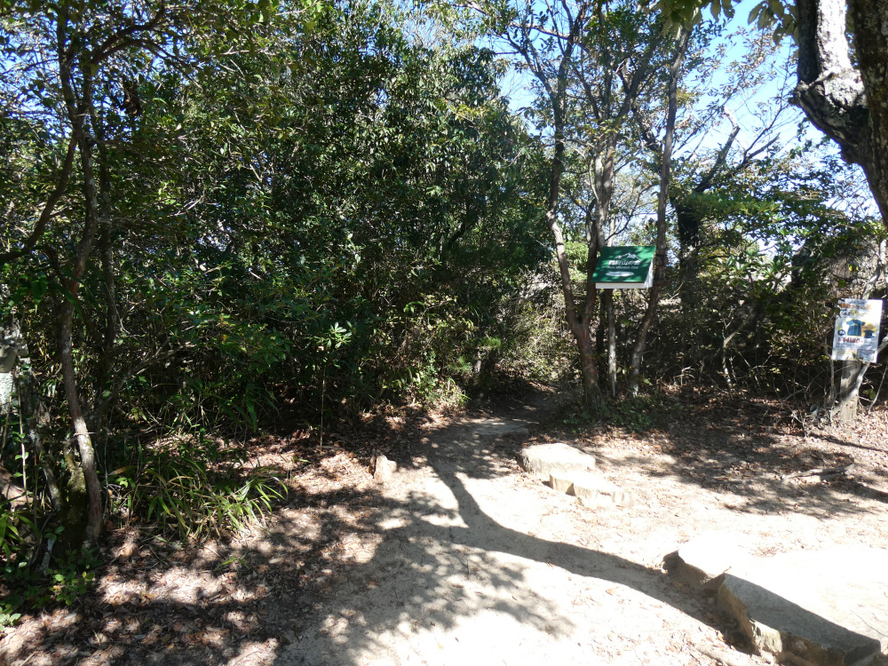 塚原コースから下山する場合は、登って来た道ではなく、山頂広場の奥から進んで行きます。