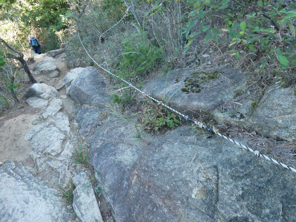 下りやすいとはいえ、もちろん岩場や急な斜面はあるので油断は禁物です!下りは特に滑りやすくなるので、ここでもロープをうまく使って慎重に足を運びます。