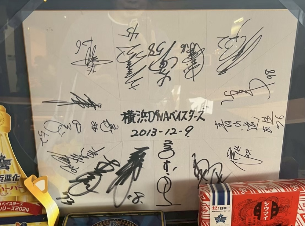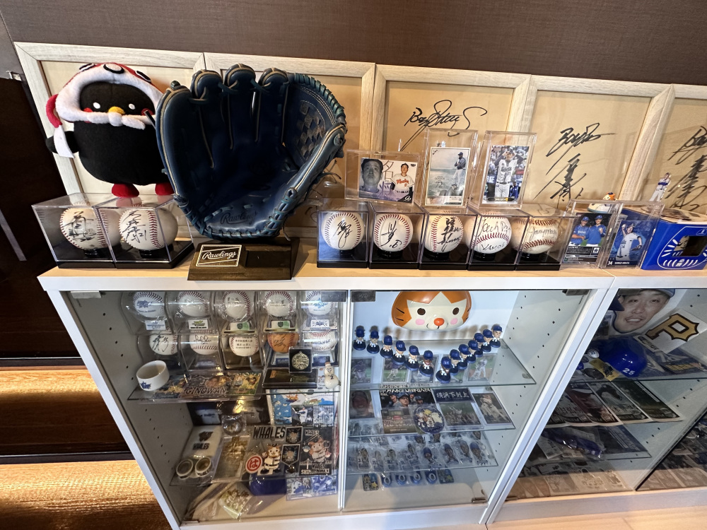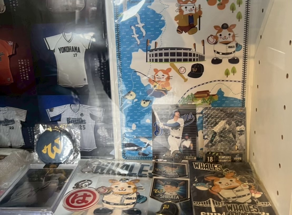 サイン入りユニフォームや記念ボール、ファンにはおなじみのマスコットグッズなど、どこを見てもベイスターズだらけです。