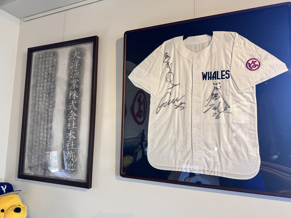 中でも目を引くのは、大洋ホエールズのオーナーだった大洋漁業(後のマルハ株式会社)の大漁旗。