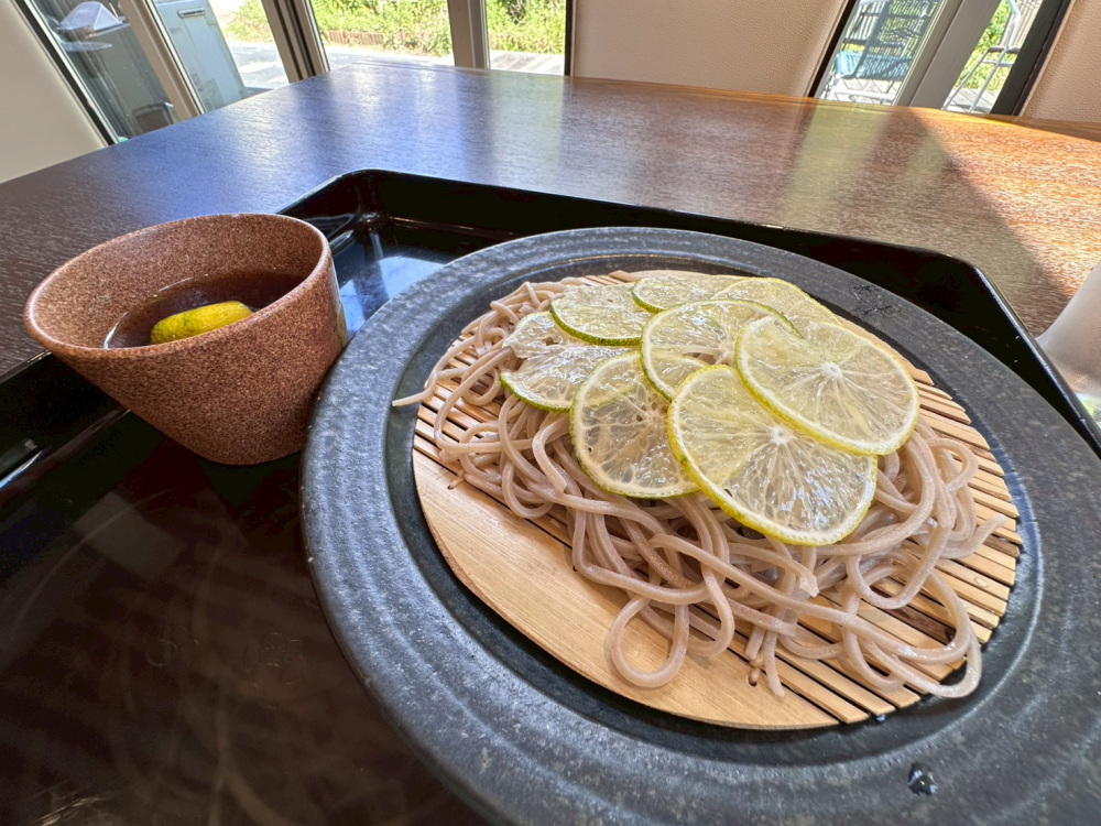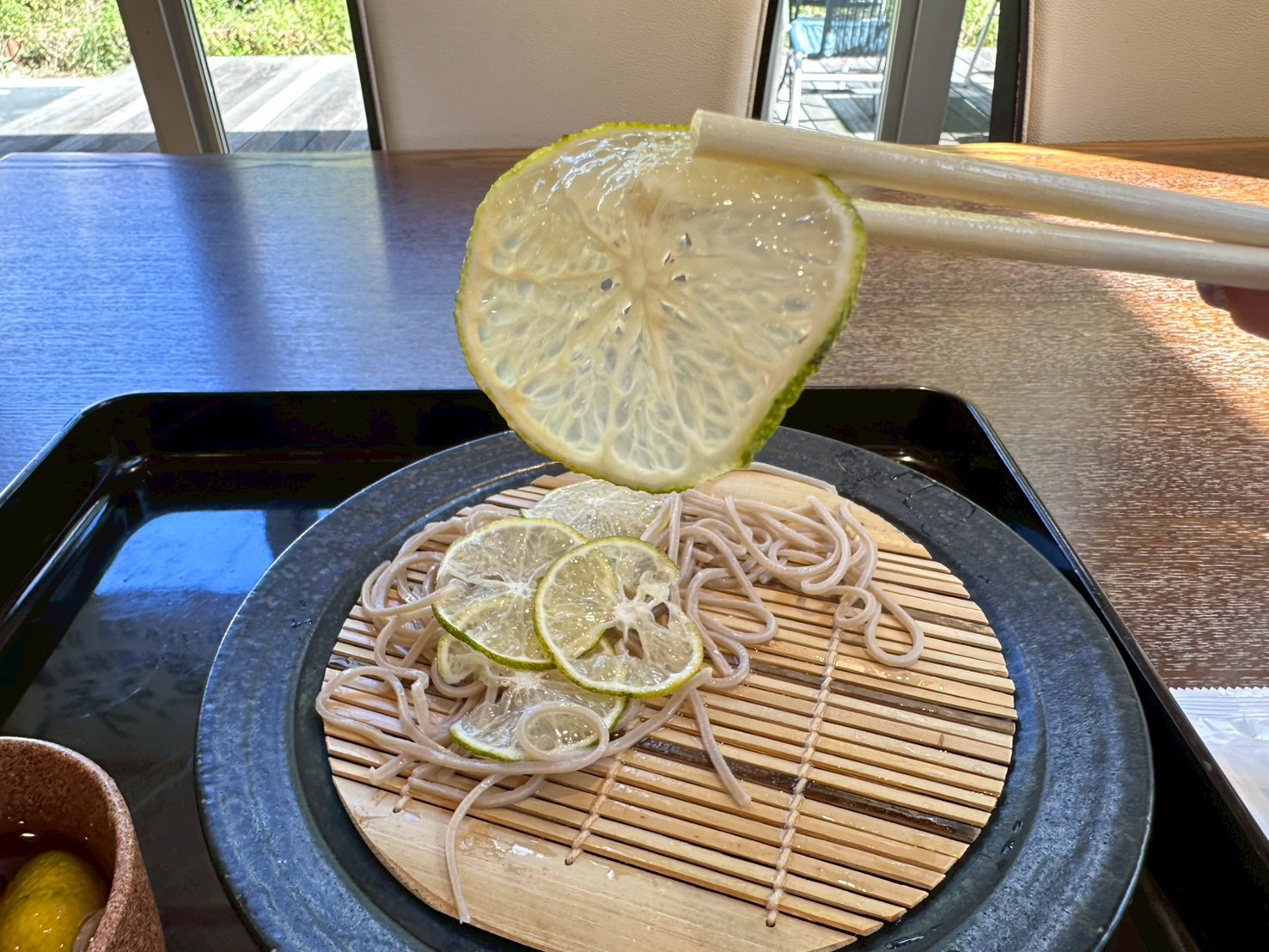 私は、俵山で作られた特産品「ゆずきち」をふんだんに使ったお蕎麦をいただきました。