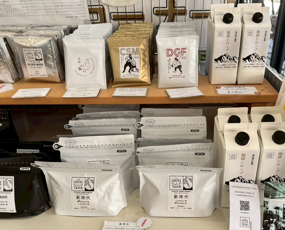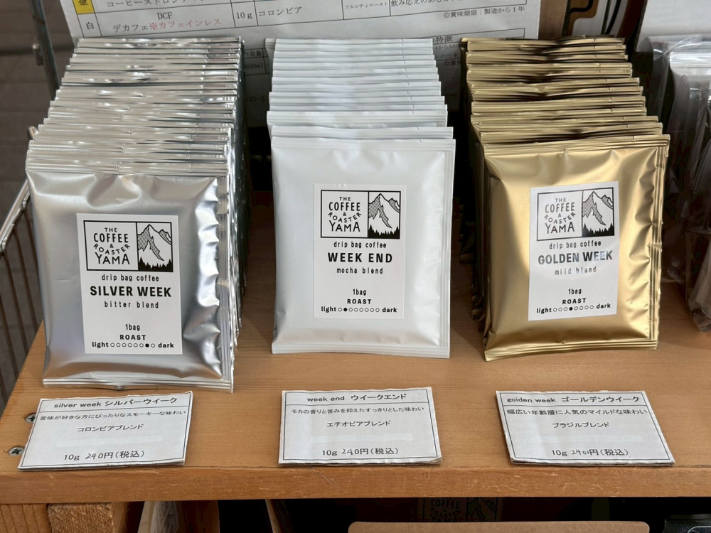 近くに焙煎所がある「COFFEE&ROASTER YAMA」の豆やドリップバッグなども販売されています。