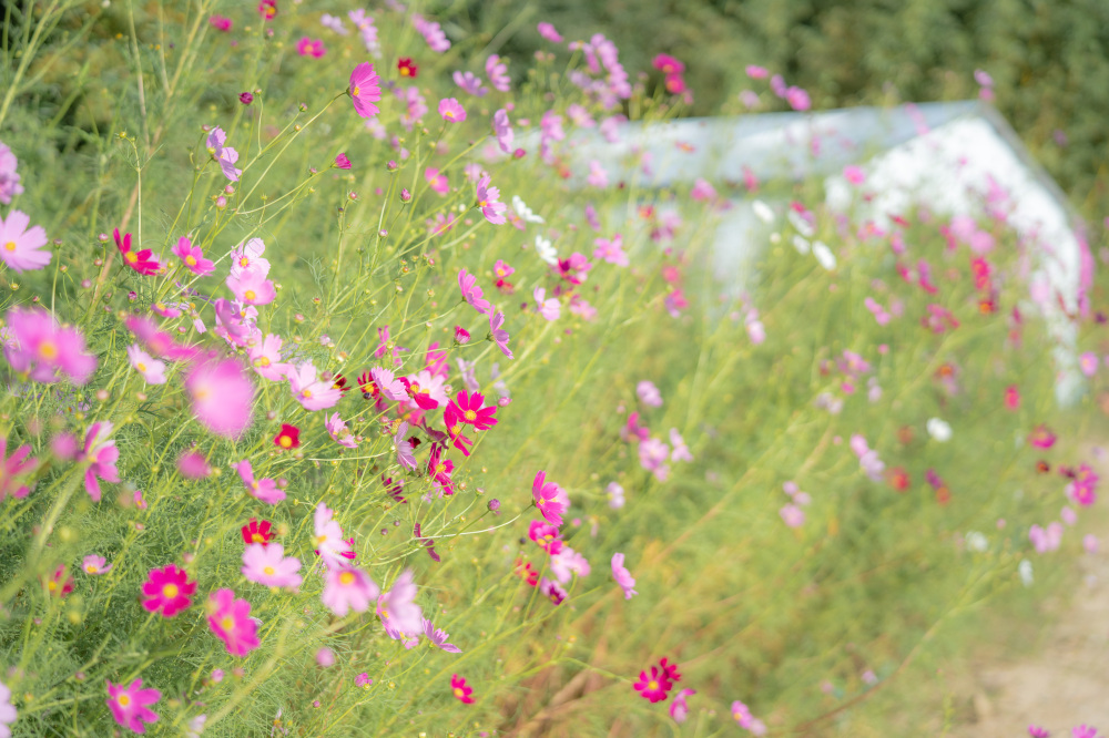 一面のコスモスが迎えてくれる、『杜の庭園 リフレッシュパーク豊浦』の幸せ空間♡