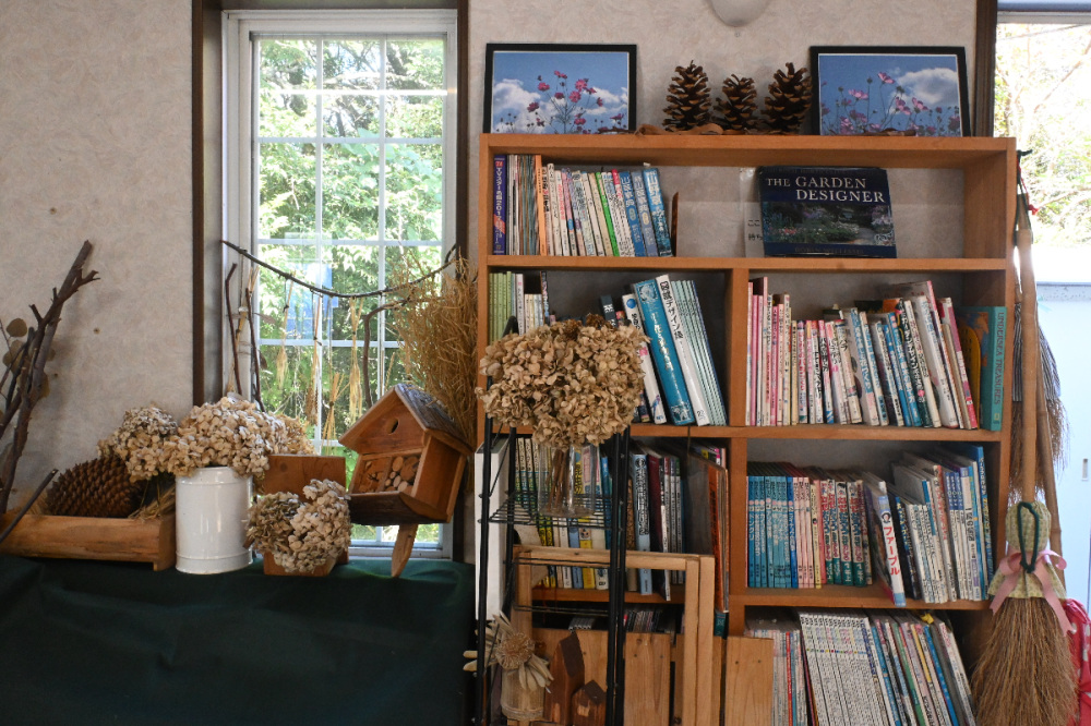 絵本やガーデニング本を開いてひと息ついたり、心地良い時間を過ごせます。