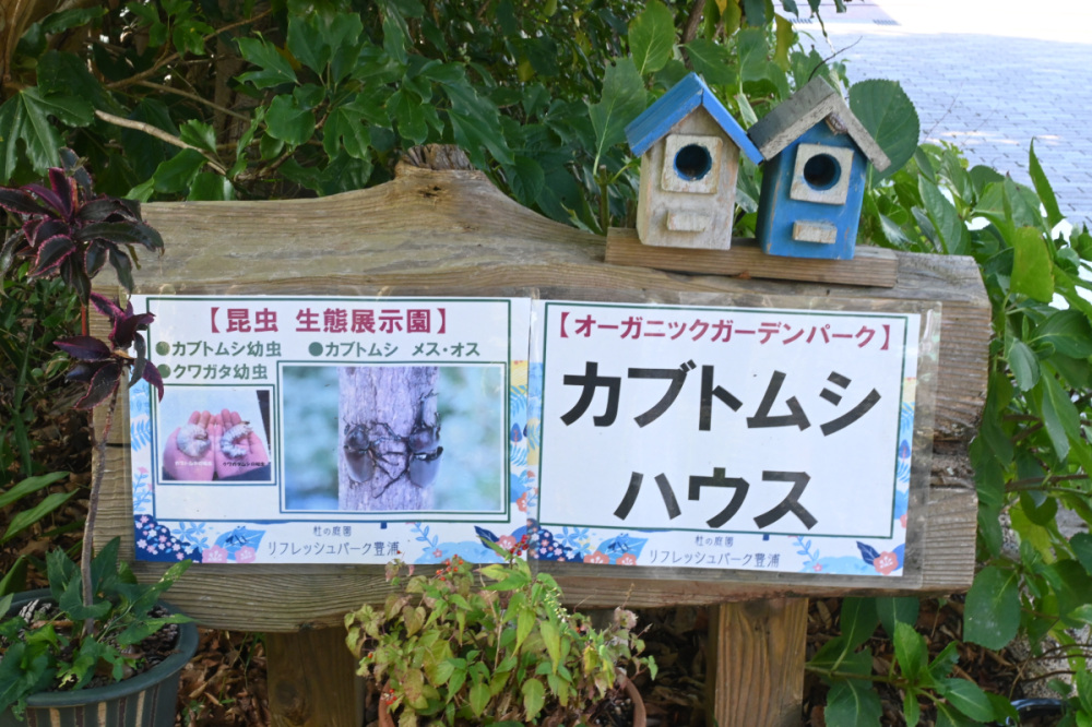 カブトムシの好きな木を集めて作られた「カブトムシハウス」では、6〜8月になると元気に動きまわる姿が見られるそう。