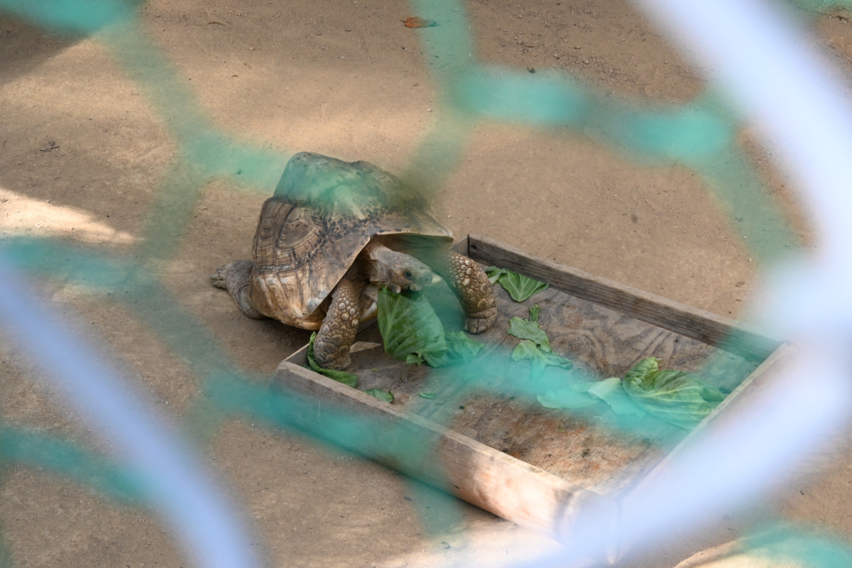 そのすぐ近くでは、ヒョウモンリクガメの“りくちゃん”が、のんびりとキャベツをむしゃむしゃ。