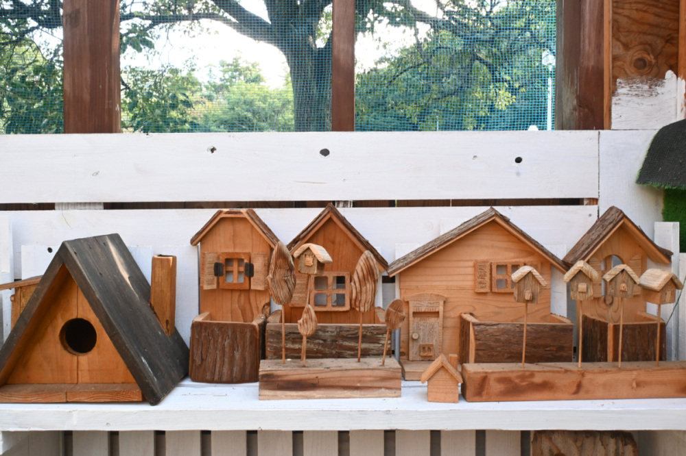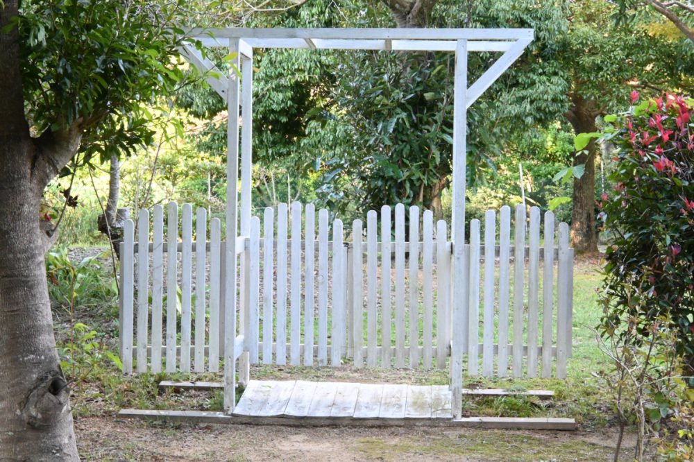 木のフェンスやベンチも手作業で仕上げられていて、角の丸みや色合いが優しい雰囲気を醸し出しています。