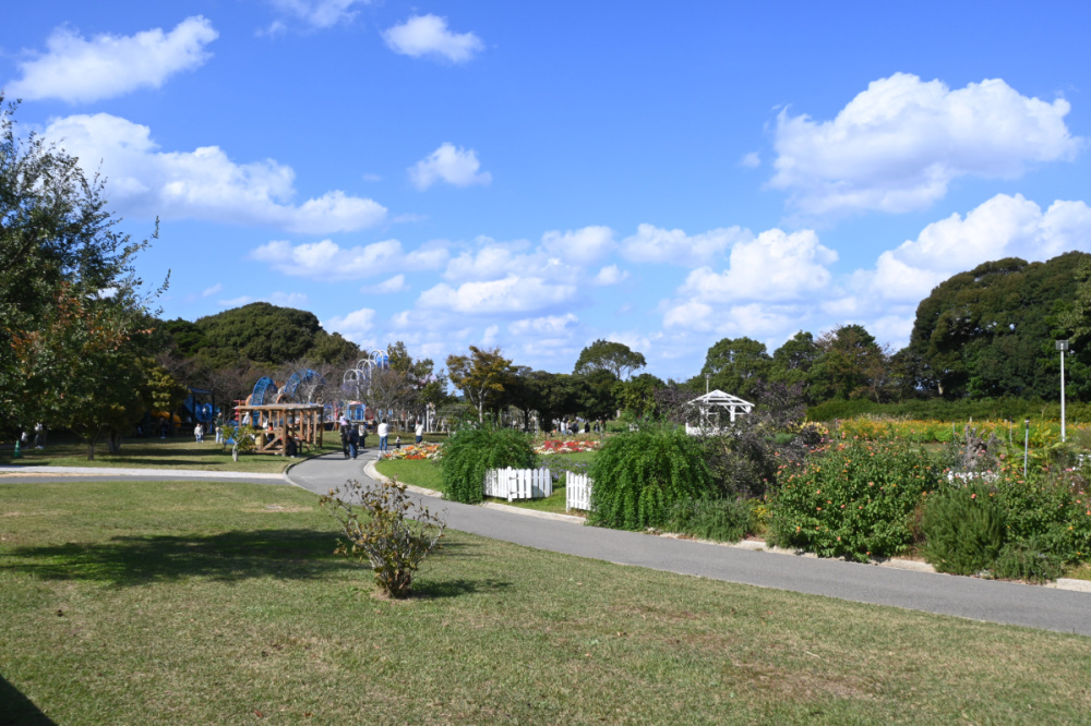 園内はゆるやかな起伏がありますが、主要な通路はコンクリート舗装されているのでベビーカーや車いすでも安心して散策できます。