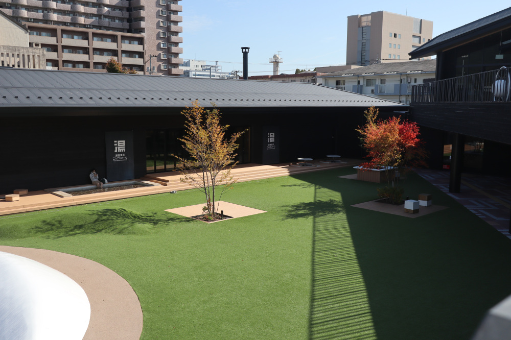 山口市の湯田温泉エリアに誕生した「こんこんパーク」は、主に「交流棟」「温浴棟」「屋外エリア」の3つからなり、さまざまな楽しみ方ができます。
