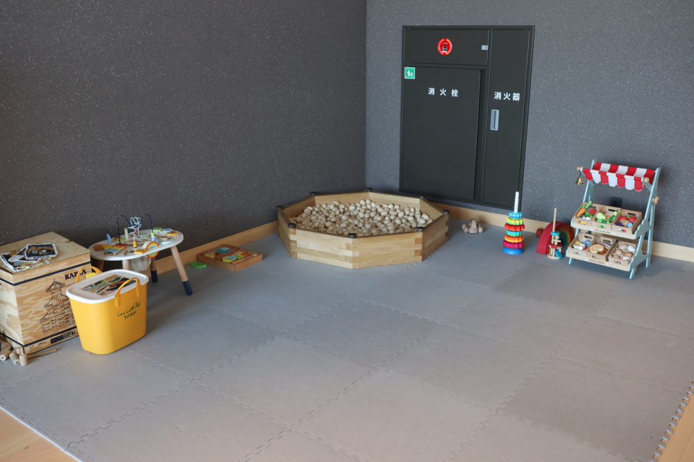 テラス内には、幼児向けのおもちゃが並び、子どもたちが自由に遊べる空間になっています。