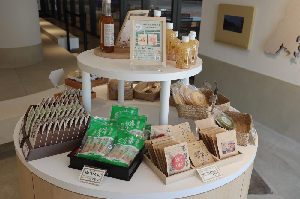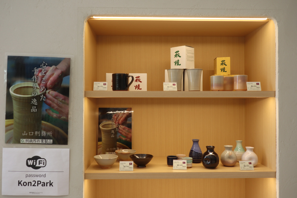 物販スペースには、萩焼や徳佐のりんごジュースなど、地元山口の特産品も並んでいます。