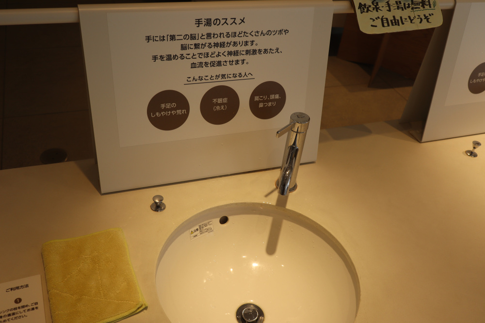 食堂内には、温泉を利用した手湯や飲泉コーナーも設けられています。