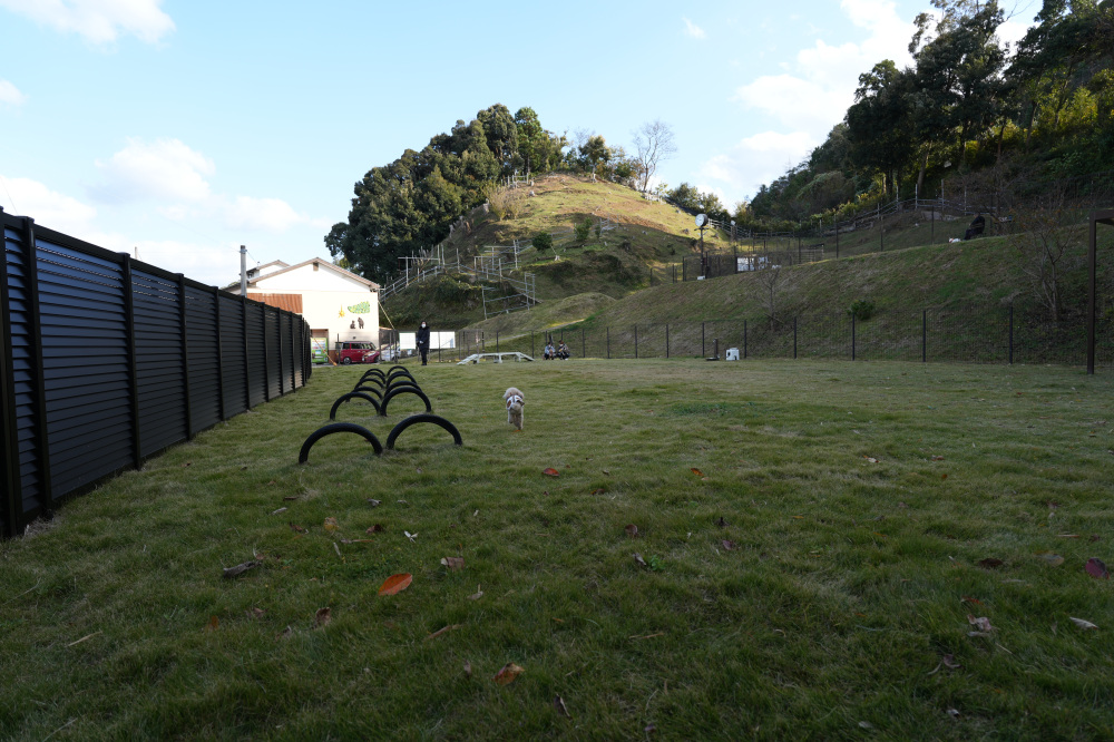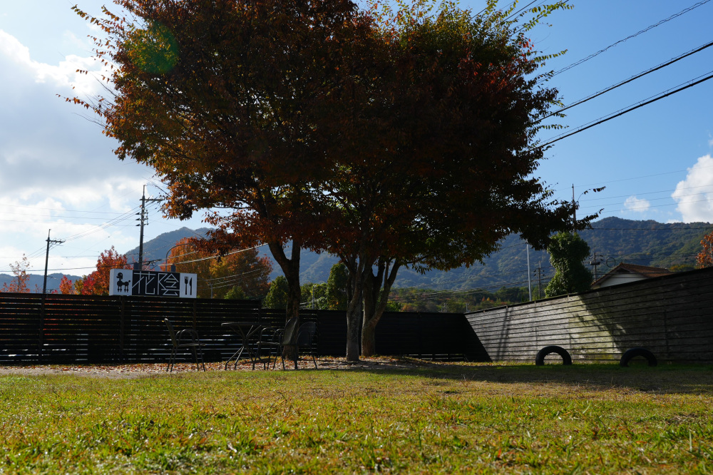 こちらは土と芝生が敷き詰められていて、ワンちゃんの足にも優しいんです。周りが山に囲まれた風景で、取材時は紅葉も望めたので、本当に気持ちの良い場所でした。
