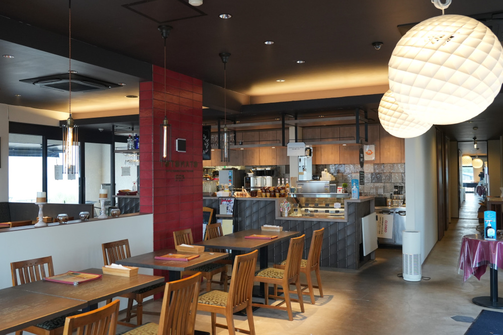阿知須の山口きらら博記念公園内にある「TOTOMATO」は、目の前に瀬戸内海が広がるオーシャンビューの絶景カフェ!